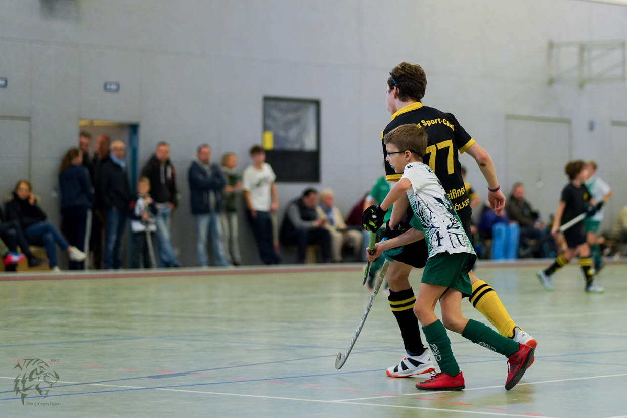 Etwas mulmig schauten die Jungs dem 2. Spiel entgegen, ging es doch gegen Knaben von BSC die vorher 4:0 gewonnen hatten. Angeführt vom Kapitän bauten sich die Jungs vor dem Spiel gegenseitig auf, schließlich wollte man vor heimischem Publikum als Mannschaft zeigen was man kann. So steigerten die Jungs sich nochmals und zeigten nicht nur eine kämpferische sondern auch eine taktisch super Leistung. Beide Mannschaften schenkten sich nichts und so wog das Spiel hin und her. Und diesmal waren es die KHU Jungs, welche durch eine Ecke in Führung gingen. Den Schuss von Nils noch parierend, den Nachschuss von Tillman allerdings nicht. Die Halle jubelte aber es war noch 3/4 der Spielzeit zu absolvieren. Konnten unsere Jungs das durchhalten? Sie konnten und hätten in der zweiten Halbzeit sogar noch erhöhen können, nein müssen. Das heimische Publikum hat zwei sehr starke Spiele unsere Knaben B gesehen gegen zwei starke und faire Gegner.